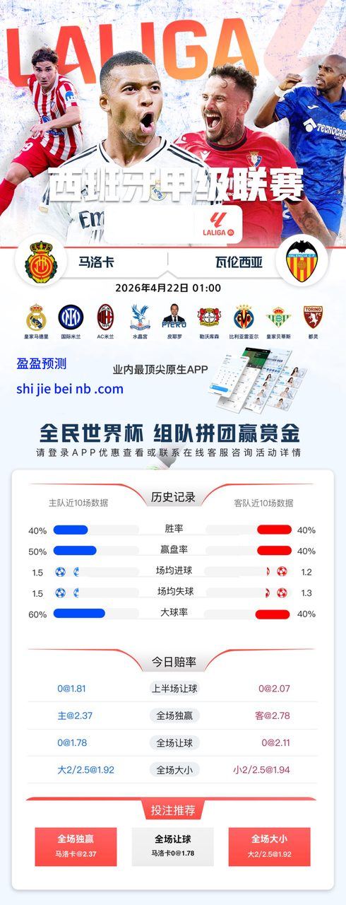 1:00 西甲 🇪🇸马洛卡 vs 🇪🇸瓦伦西亚
